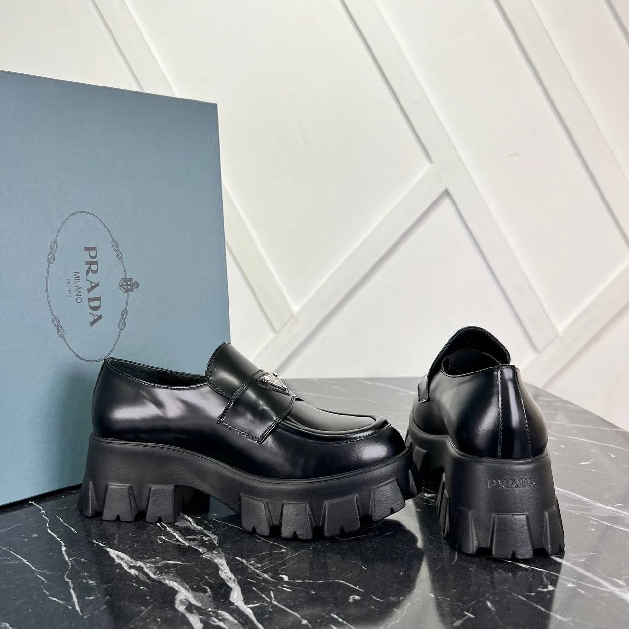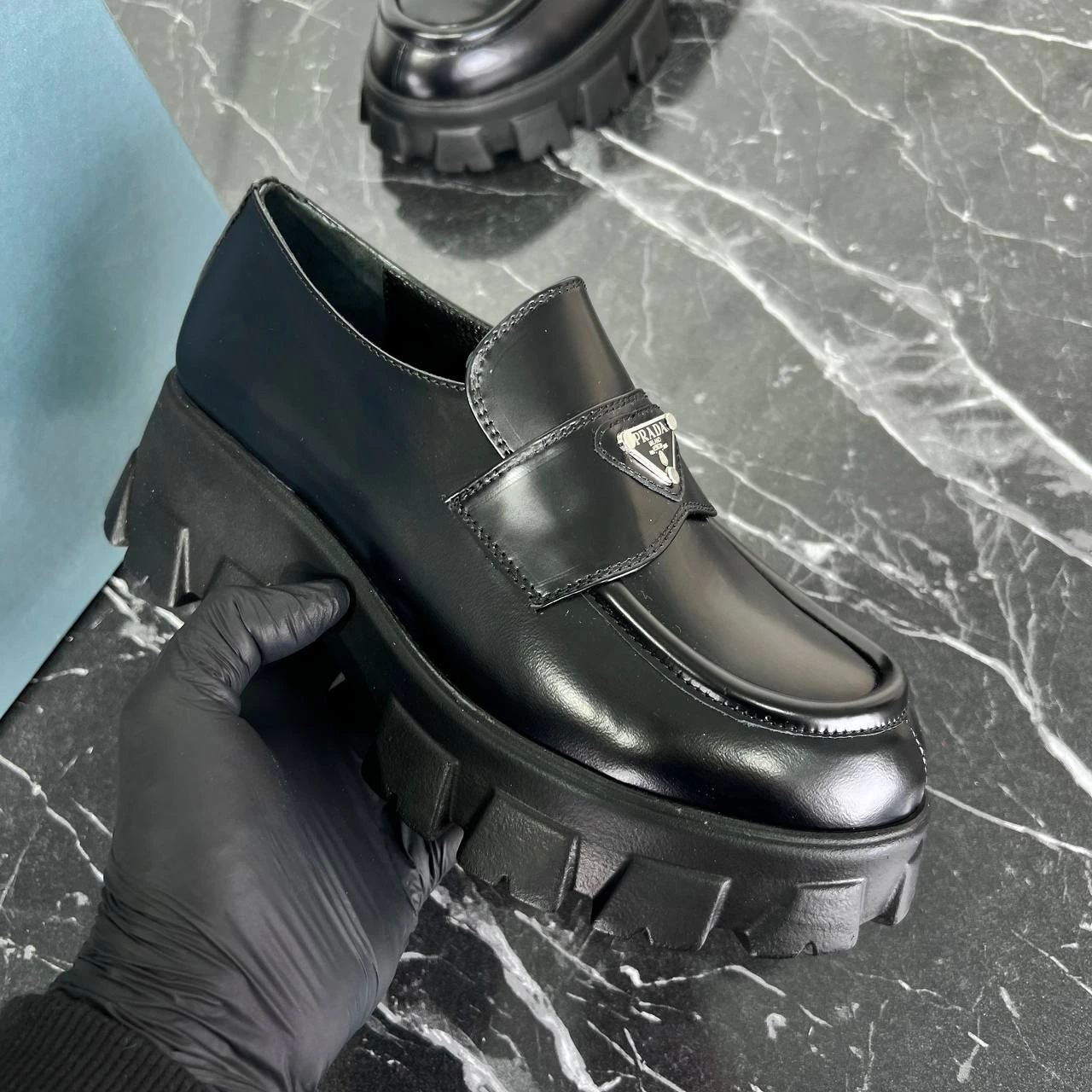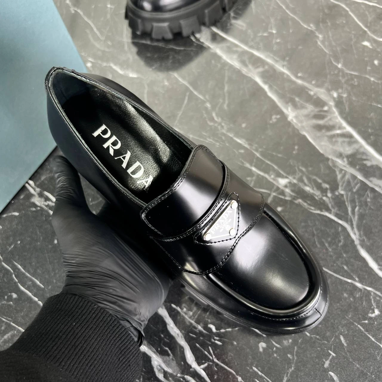 Prada Brushed Leather Monolith Loafers