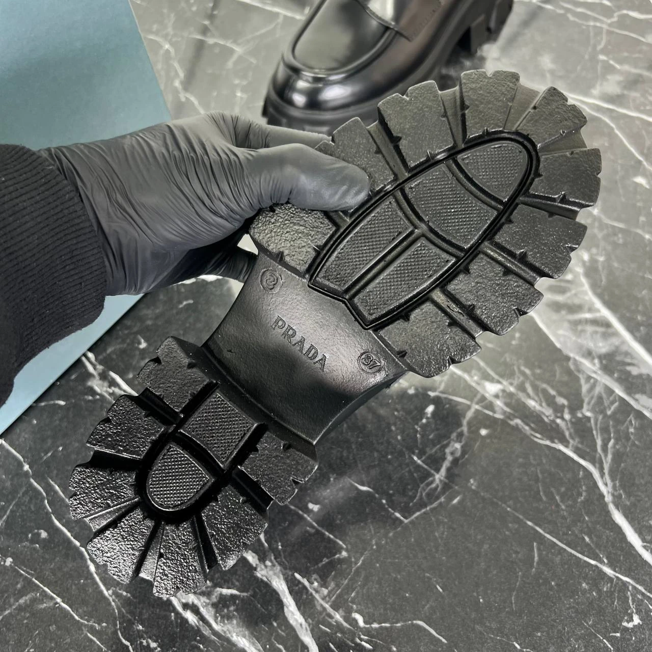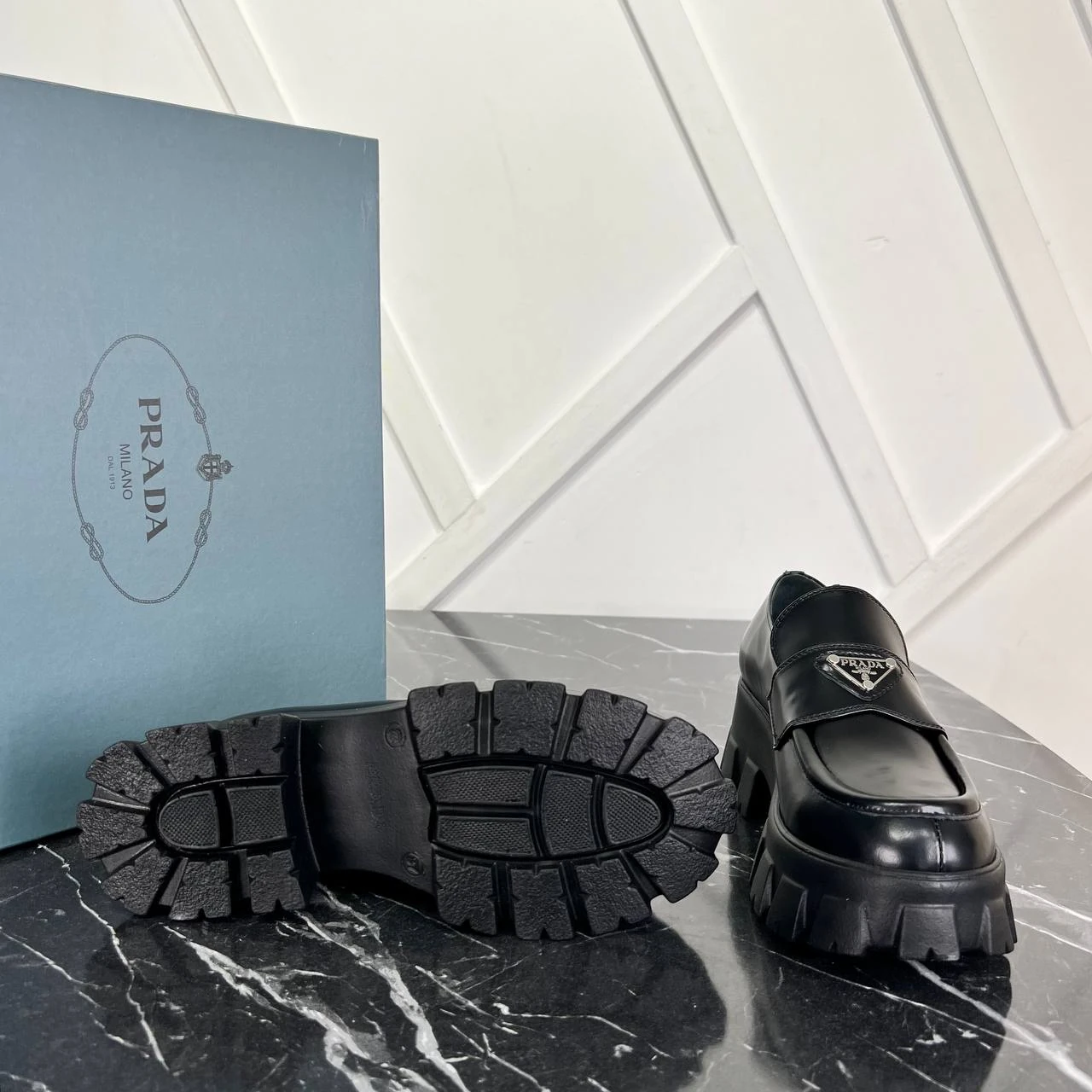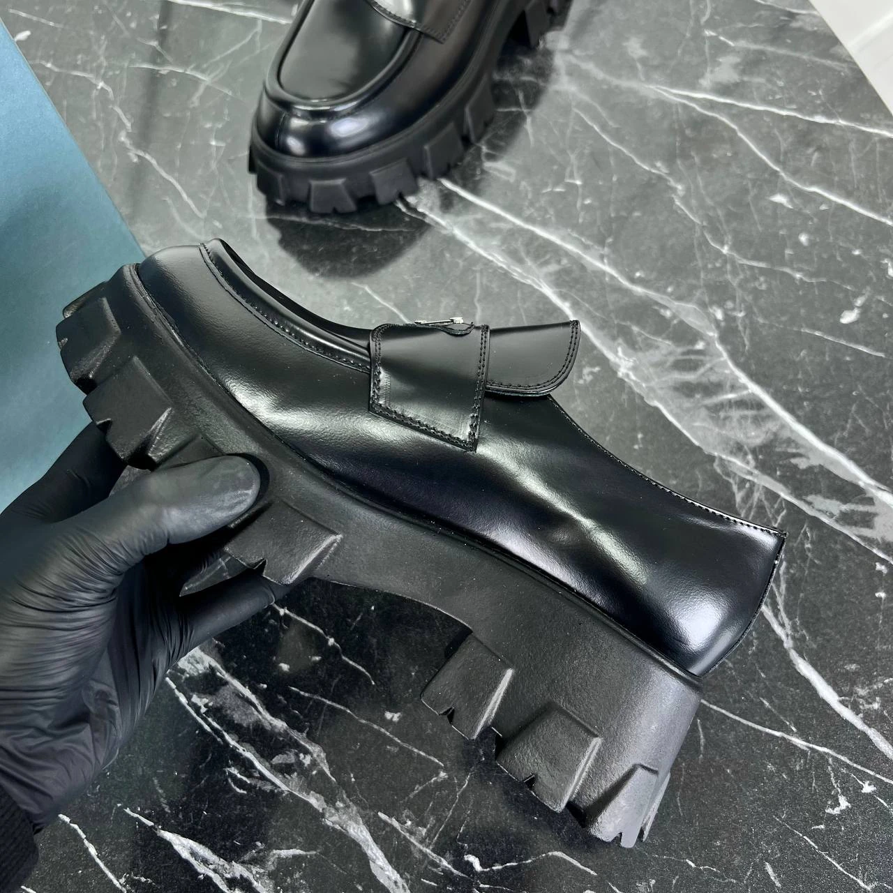 Prada Brushed Leather Monolith Loafers